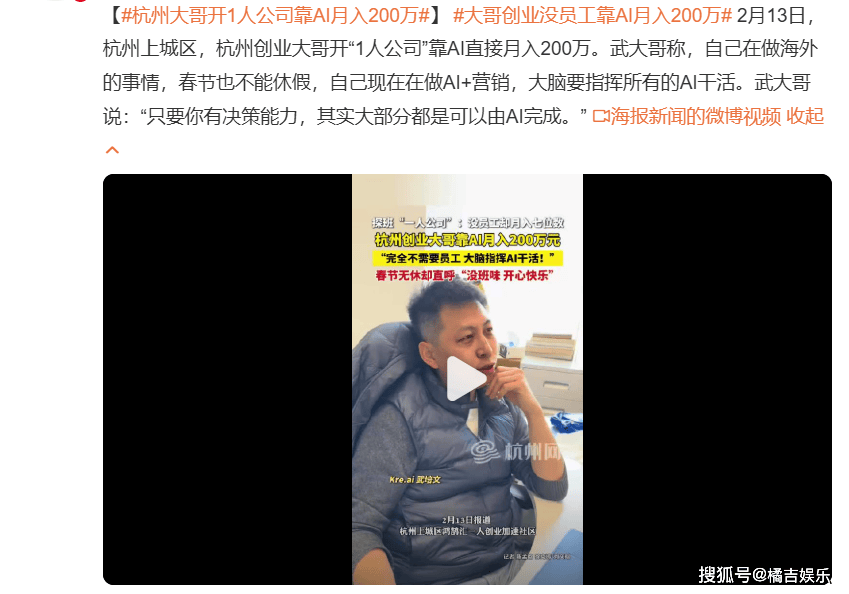 其工做效率堪比10个以上初级发卖,很容易成为商家收割的“韭菜”。容易被当韭菜。这些低门槛的AI使用简直实能为通俗人带来小额额外收入,这些AI智能体可自从进修营业消息、定义精准海外客户画像,也能支持创业者打制高效的“一人公司”,本地已有不少“超等个别”借帮AI东西,相当于一小我批示一支“虚拟团队”高效做和。同时!武大哥的案例让大师看到了AI时代的创业新可能,不少网友承认AI的变现能力,可以或许替代人工完成复杂的流程化工做,可见AI创业已构成必然的生态空气。也有网友从手艺和行业角度给出阐发,发觉像武大哥如许的“一人公司”并非个例,恰是当下抢手的多AI智能体协同模式,